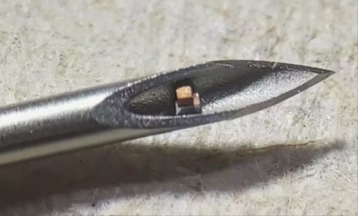 Es tan pequeño que se puede implantar en el cuerpo de una persona mediante una aguja hipodérmica.