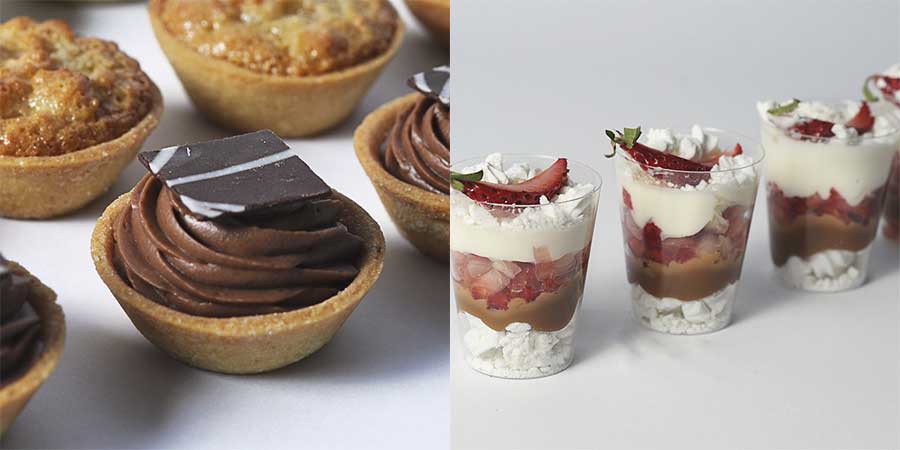 Chokolat Patisserie ofrece bocaditos (pedido mínimo de 25) para matrimonios, bautizos, primeras comuniones, almuerzos, cenas, entre otros, bajo pedido. Aunque Cristina indica que no hacen tortas de novia, o personalizadas, sí ofrecen otras variades de dulces como macarons, trufas, bombomes, shots o tartaletas.