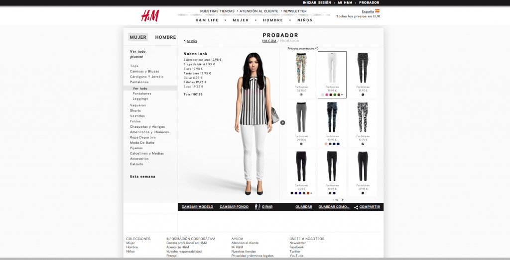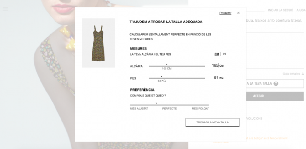 Para acceder a su “probador virtual” es necesario visitar su catálogo de productos, a través de su página web o su aplicación, una vez dentro elegir la prenda a adquirir y añadirla a la cesta, en este paso te dará la opción “Encuentra tu talla” donde responderás un test de: altura, peso y preferencias (¿cómo te gusta usar la ropa ?, ajustada, de tu talla o más suelta).
