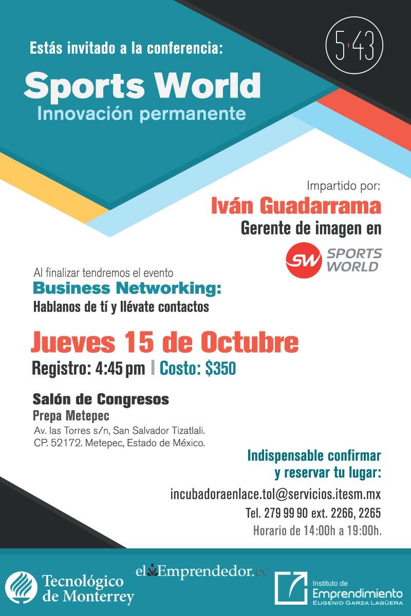 Esta 2da edición del 5.43 será impartida por Iván Guadarrama, Gerente de Imagen de Sports World. Además de su trabajo, Iván ganó un Tótem de Revista Publicista que reconoce a lo mejor en publicidad móvil en México durante 2011 y llevó al éxito a la famosa cuenta de Twitter «@orgullogodinez» (ahora @mamexican). Es un Community Manager reconocido y un líder innovador que impartirá una conferencia sobre los procesos de innovación aplicados a la marca Sports World durante el 5.43. Además, dará consejos en marketing y comunicación.