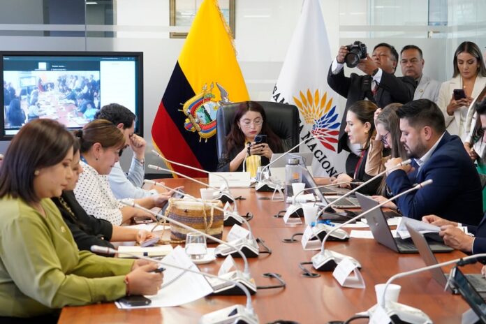 Sesión de la comisión de Régimen Económico, presidida por la asambleísta, Nathaly Farinango. Foto: Carlos Granja Medranda