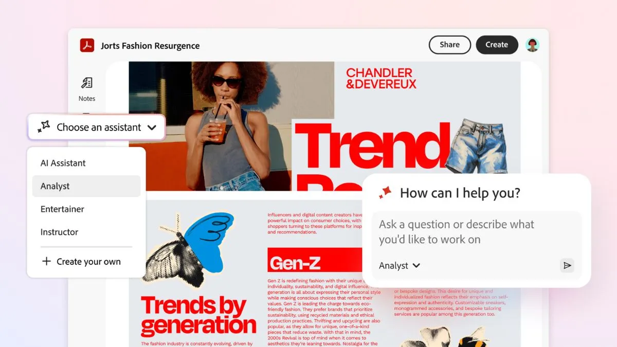 Los consumidores pueden escanear contratos hipotecarios y acuerdos de arrendamiento de automóviles, pedir a los asistentes de IA que les expliquen los detalles y, a continuación, firmar electrónicamente y enviar la documentación, todo desde el mismo lugar. Los viajeros pueden utilizar Acrobat Studio para recopilar folletos, reseñas, itinerarios y recomendaciones, y contar con la ayuda de los asistentes de IA para planificar el viaje perfecto.