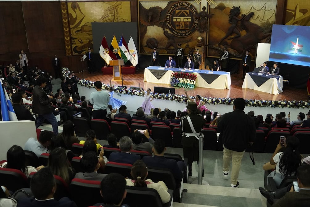 La sesión del pleno del Parlamento se instaló pasadas las 11:30 de este viernes, 28 de noviembre de 2025, en el auditorio Agustín Cueva de la Universidad Técnica del Norte, con la presencia de asambleístas, autoridades e invitados y arrancó con el ingreso del estandarte patrio
