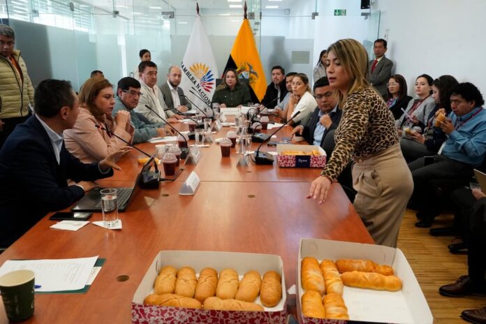 Las guaguas de pan y la colada morada fueron un obsequio del asambleísta Manuel Blacio Castillo (ADN). El gesto lo resaltaron la presidenta de la mesa, Janina Rizzo (ADN), y la legisladora Nuria Butiñá (RC).