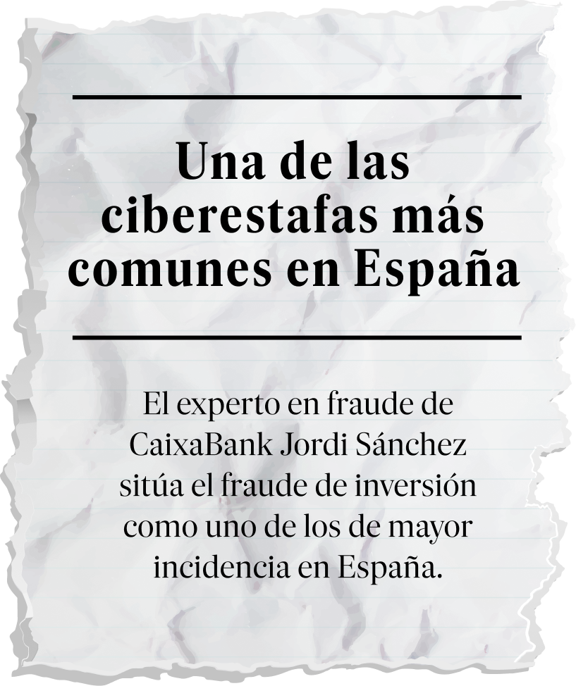 Sánchez explica que entidades bancarias como CaixaBank avisan a sus clientes si detectan movimientos sospechosos. Pero en ocasiones, comenta, el cliente no hace caso. “El trabajo de manipulación por parte de los estafadores es tan exhaustivo que advierten a sus víctimas de que seguramente les llamará el banco para catalogar como estafa su inversión porque no quieren que el cliente se lleve su dinero a otra parte”, detalla Sánchez.