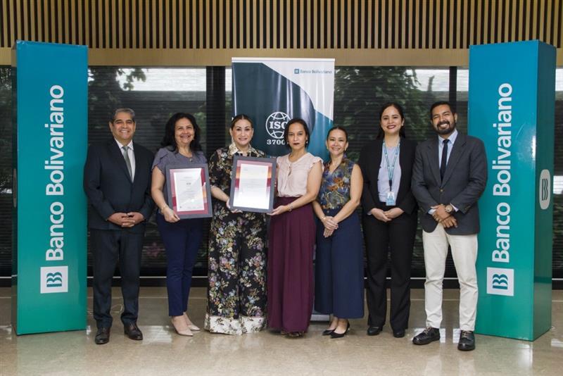 Guayaquil, julio 2025 – Banco Bolivariano ha recibido recientemente la recertificación de dos importantes normas internacionales: ISO 9001, que respalda su Sistema de Gestión de la Calidad, e ISO 37001, que certifica su Sistema de Gestión Antisoborno. Estos estándares, reconocidos a nivel global, consolidan el compromiso del Banco con la excelencia, integridad y mejora continua.