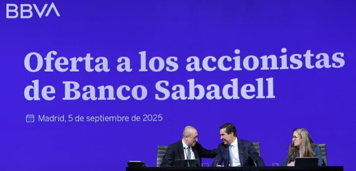 El BBVA eligió compensar a los accionistas del Banco Sabadell principalmente mediante un canje de acciones, por lo que a medida que más suben sus acciones de precio, en teoría, más valor está ofreciendo a los accionistas del banco catalán. A pesar de que la ecuación de canje se ha ido volviendo cada vez menos generosa para recoger el impacto de los dividendos que ha ido entregando el Sabadell, con una subida superior al 50% en Bolsa desde que se anunciara la operación, el BBVA está ofreciendo más valor que antes.