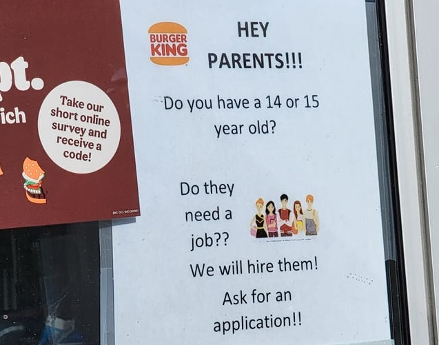 En Ohio, la edad mínima para trabajar es 14 años, por lo que la oferta de empleo a adolescentes de ese Burger King es legalmente válida.