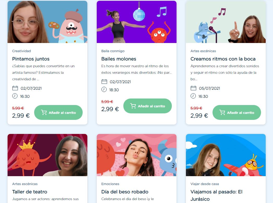 En Nanny Fi, podrás comprar cursos online de cualquier temática, desde baile hasta pintura e incluso actuación. Está disponible tanto en web y dispositivos móviles y cuenta con actividades y cursos con una duración aproximada de 30 minutos. Los cursos se desarrollarán en directo y en caso de contar con un plan premium, tu niño o niña podrá interactuar con el profesor.