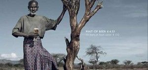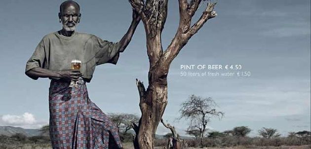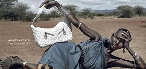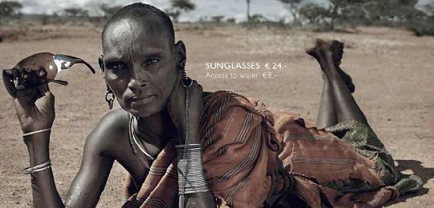 La provocadora campaña muestra a modelos africanos en situaciones de vida extremos promocionando costosos productos de la industria.
