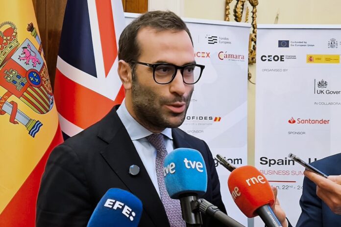 El ministro Cuerpo ha viajado a la capital británica para aplicar intensidad a una relación económica y comercial que ya es una de las más importantes de España. “El stock de inversión bilateral es de unos 150.000 millones. El alcance de nuestro comercio bilateral es 80.000 millones, en materia de bienes y servicios. Queremos seguir profundizando esa relación y lo que queremos hacer de la mano de nuestras empresas”, ha dicho este jueves.