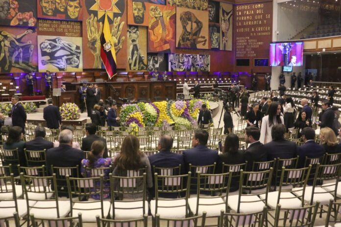 En la mañana de este sábado 24 de mayo, desde el Salón Plenario de la Asamblea Nacional de Nela Martínez, la ceremonia de propiedad presidencial de Daniel Nnovera AzínQuien asumirá sus primeros cuatro años como presidente constitucional de Ecuador.