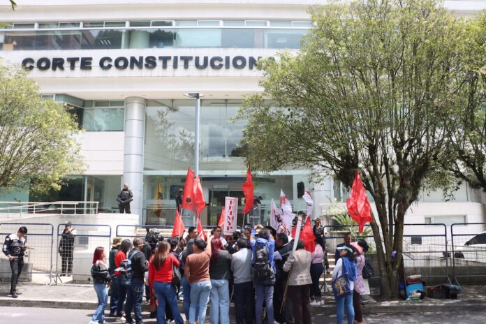 Después de seis horas de audiencia pública, los nueve jueces de la Corte Constitucional se retiraron a deliberar respecto de cinco acciones públicas de inconstitucionalidad planteadas por organizaciones de la sociedad civil en contra de la Ley Orgánica de Solidaridad Nacional promovida por el presidente del gobierno, Daniel Noboa Azín.