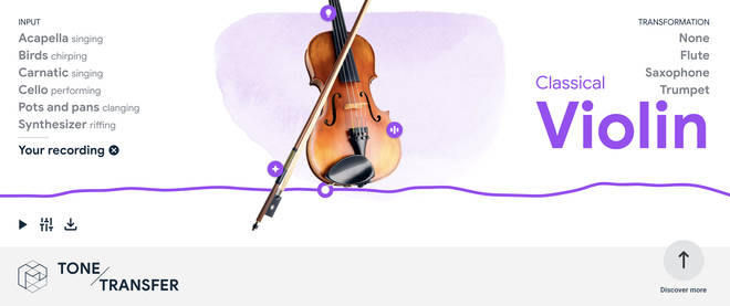 Se trata de Tone Transfer se trata de un algoritmo de aprendizaje automático de Google, es capaz de transformar melodías en señales digitales que después se transforman en melodías con los instrumentos que tu elijas como: