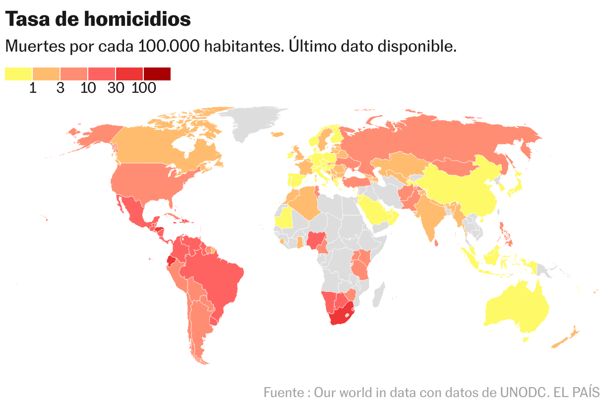 Sin embargo, el Instituto de Economía y Paz (IEP por sus siglas en inglés) en su Índice Paz Global 2024 calcula también los costes indirectos —impactos a largo plazo como la pérdida de productividad derivada de los efectos físicos y psicológicos y la influencia del delito en la percepción de seguridad de la ciudadanía— y su efecto multiplicador —los beneficios que se generarían al desviar, por ejemplo, el gasto de las cárceles hacia alternativas más productivas—. El think thank con sede en Sidney cuantificó en 19,1 billones de dólares el impacto de la violencia en la economía mundial en 2023, una cifra que supera de largo el PIB actual de la eurozona y también de China, la segunda economía del planeta. Y equivale al 13,5% de la riqueza global o, lo que es lo mismo a 2.380 dólares per cápita.