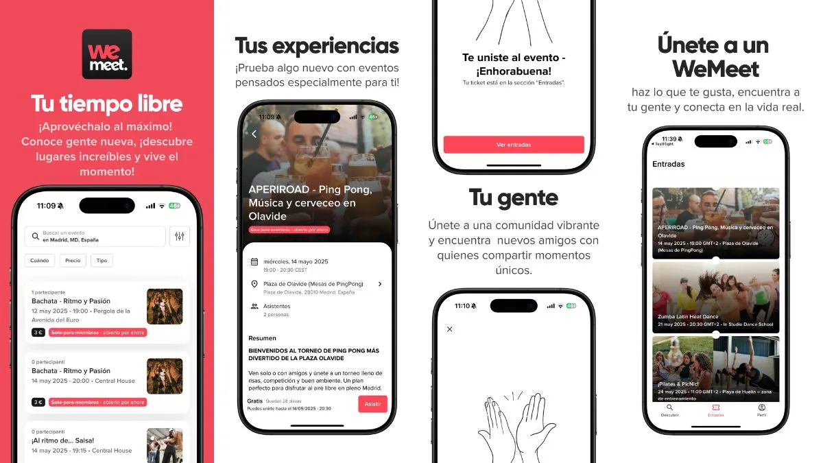 La app de WeMeet está disponible en varios idiomas y cuenta con filtros personalizables para que el usuario encuentre el evento que más se ajuste a sus gustos. Los usuarios podrán confirmar asistencia a eventos en su ciudad, recibir invitaciones personalizadas y seguir a sus anfitriones favoritos.