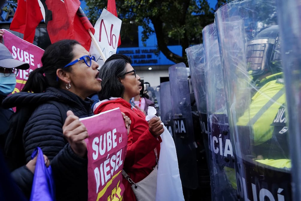 Dirigentes sindicales como Edwin Bedoya, presidente del FUT, Andrés Quishpe, presidente de la UNE y Marcela Arellano, presidenta de la Ceosl, rechazaron la presencia de la fuerza pública y criticaron que el Gobierno busca prohibir la movilización ciudadana.