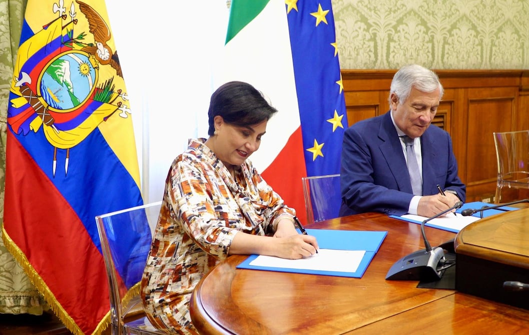 La canciller ecuatoriana Gabriela Sommerfeld y su homólogo italiano, Antonio Tajani, mantuvieron una reunión en la que reafirmaron los compromisos adquiridos en 2024 en materia de seguridad, movilidad humana e inversión.