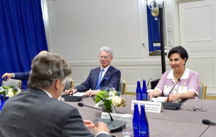 Lo hizo en un conversatorio con el Consejo para las Relaciones Exteriores, en Nueva York, donde se encuentra para participar este jueves en la Asamblea General de la ONU en representación del presidente Daniel Noboa, quien permanece en el país andino por las protestas indígenas que se registran por la eliminación del subsidio al diésel.