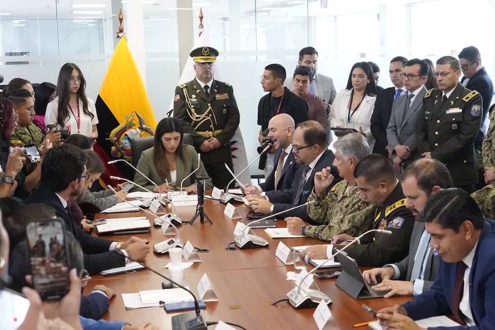 La reunión comenzó con 45 minutos demasiado tarde y primero evitó el proyecto del proyecto, la mesa legislativa bajo el presidente del hombre de la reunión Valentina Centeno, y luego abrió las apariciones del ministro de Defensa, Gian Carlo Loffredo; Dentro de John Reimberg; del comandante general de la policía, Patricio Dávila; Y desde la cabeza del mando común de las fuerzas armadas Jaime Vela.