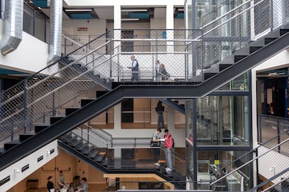 Pasan las ocho de una tarde lluviosa y desapacible en Madrid (como la mayoría en las últimas semanas). Daniel (28 años), Cristina (23) y Pablo (24) están apostados a la salida de su universidad comentando los últimos detalles del máster de Diseño de Producto que estudian. Un curso que cuesta 14.000 euros en la Universidad de Diseño, Innovación y Tecnología (UDIT), que hace tan solo unos meses estrenó campus en la capital. Los tres jóvenes comparten sus motivaciones al elegir este centro privado en lugar de uno público: las mayores salidas laborales que proporciona al contar con numerosos acuerdos con empresas, los recursos tecnológicos que despliega y un profesorado bregado en el día a día del mundo corporativo. “Dinero llama a dinero”, dice Pablo, que ha venido a cursarlo desde Vitoria, como Daniel, llegado de Colombia con el objetivo de desarrollar su profesión en España, donde los salarios son superiores. Unos metros más allá, Carlos, alumno de grado de 22 años, suma a los argumentos la restringida oferta en su carrera y las elevadas notas de corte de la universidad pública para haberse decantado por la privada, donde cada uno de los cuatro cursos que recibirá sale por 12.000 euros.