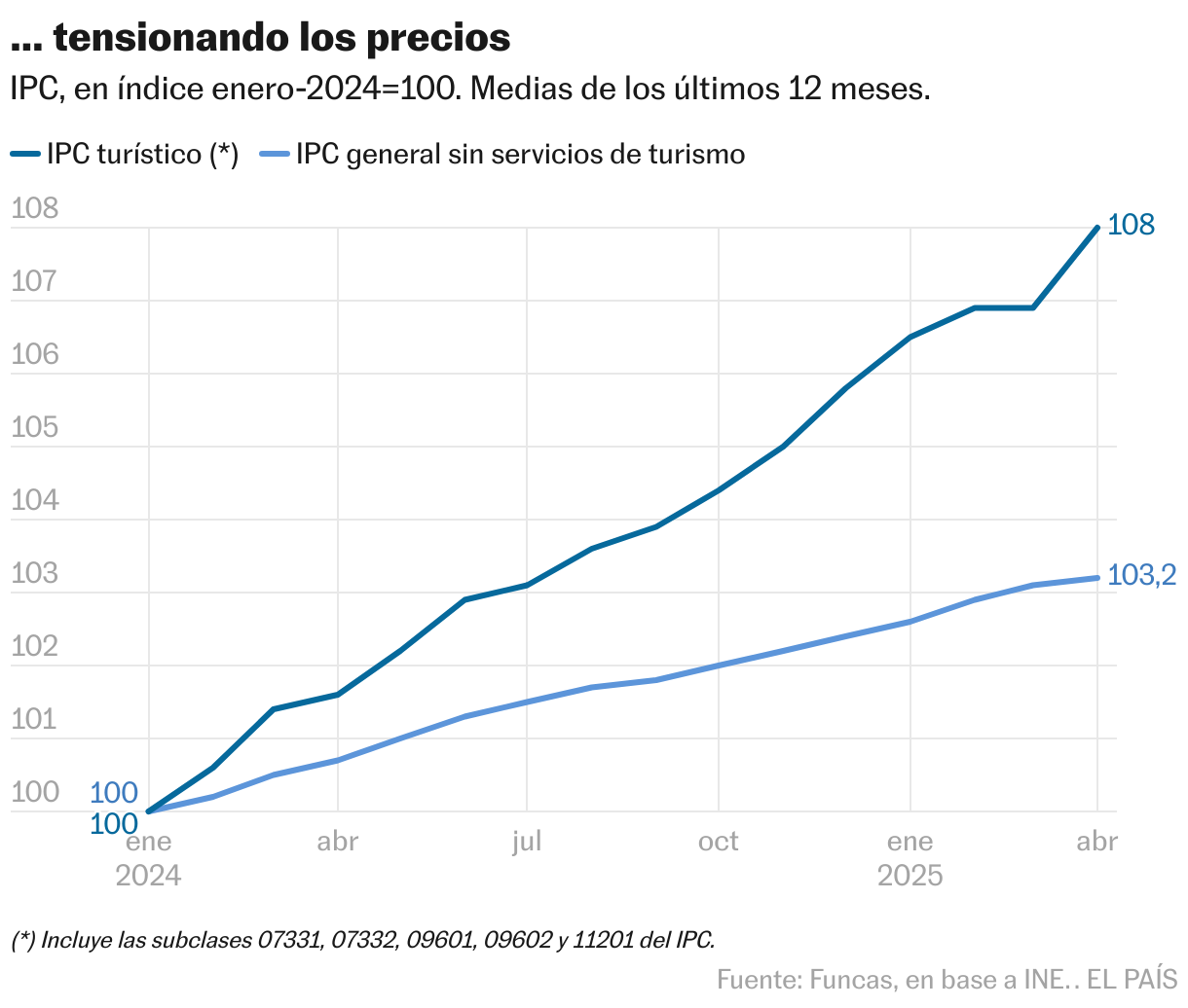 La inercia nos traería Un voltaje persistente Los precios que también reducen el margen de crecimiento de las empresas recién creadas o abarcan un alto efecto de tractor en la productividad. El sector en sí perdería competitividad frente a otros objetivos de vacaciones, un hecho que actualmente no ha ocurrido porque países como Grecia o Portugal saben Problemas de sobrecarga similares.