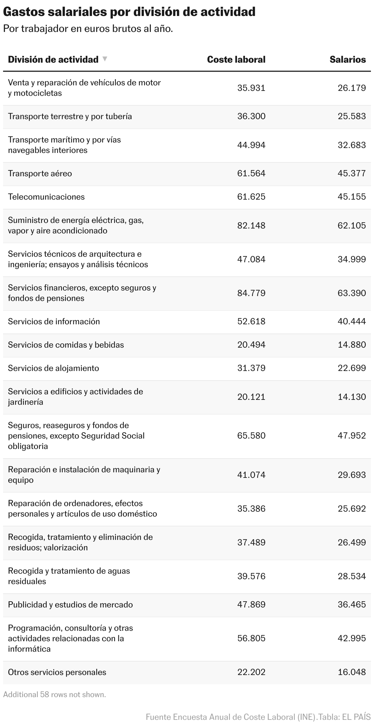Según la desventaja, los resultados de los costos laborales anuales de Los Ángeles de INE, la Compañía o los Acuerdos del Centro de Trabajo recolectaron los salarios más altos (31,458.83 europeos), por encima del nivel estatal (27,337.61) o los sustantivos del estado (23,247,67). La parada incorrecta, sobre todo, estaban en otras formas de regulación, que se colocaron en 33,735.71 europeos.