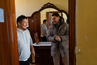 Así se instalaron el martes pasado los nuevos vecinos de Paredes de Nava, la familia Estrada, formada por el matrimonio peruano Alberto y Karen, ambos de 40 años, sus cinco hijos y la madre de ella. Los Estrada habían pasado tres años en un albergue de Madrid y se mudaron al pueblo apenas una semana después de que Tutecho comprara esa casa de dos plantas y cuatro habitaciones. “Es más tranquilo”, susurra Alberto. Seis días después de llegar, empezó como tractorista en una empresa agraria con contrato indefinido. Por primera vez en España, deja atrás los contratos temporales en Madrid como conductor de VTC. Por su parte, Karen se ha inscrito en un taller de albañilería y, si la admiten, percibirá el salario mínimo (1.200 euros) durante su formación.