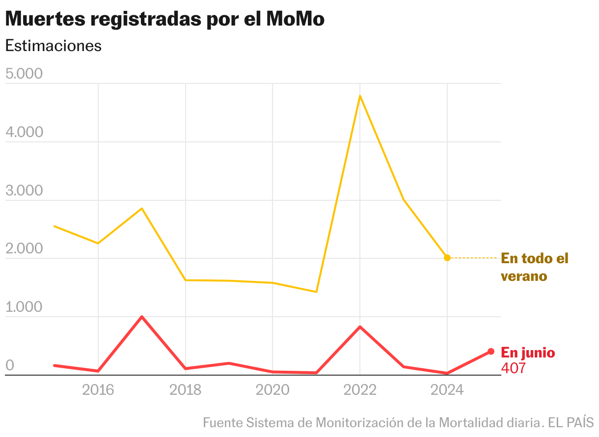 En términos generales, es muy difícil cuantificar el número de personas que fallecen por calor cada año en España. Diversas fuentes estadística intentan contestar a esa pregunta. Según estimaciones del Sistema de Monitorización de la Mortalidad Diaria, del Ministerio de Sanidad, en 2024 fueron 2.012 a lo largo de todo el verano. La aplicación Mace, desarrollada por el CSIC con otra metodología, las elevaba solo en junio del año pasado a 4.128. No es un recuento administrativo, son proyecciones resultantes de cruzar datos de mortalidad, umbrales de temperaturas peligrosos y compararlos con lo acontecido en años previos. Pero las cifras contrastan poderosamente con las estadísticas laborales oficiales.
