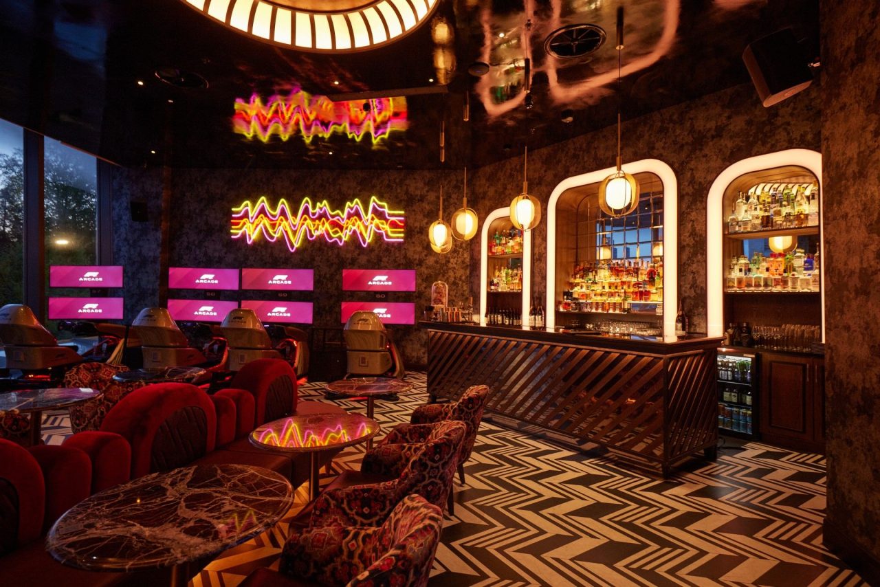 Además, el innovador diseño del Arcade incluye lámparas de neón inspiradas en los circuitos, marcas de derrapes de neumáticos pintadas a mano en las paredes y diferentes elementos en la iluminación que simulan las luces de la parrilla de salida de las carreras.