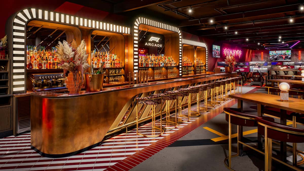 Además, el innovador diseño del Arcade incluye lámparas de neón inspiradas en los circuitos, marcas de derrapes de neumáticos pintadas a mano en las paredes y diferentes elementos en la iluminación que simulan las luces de la parrilla de salida de las carreras.