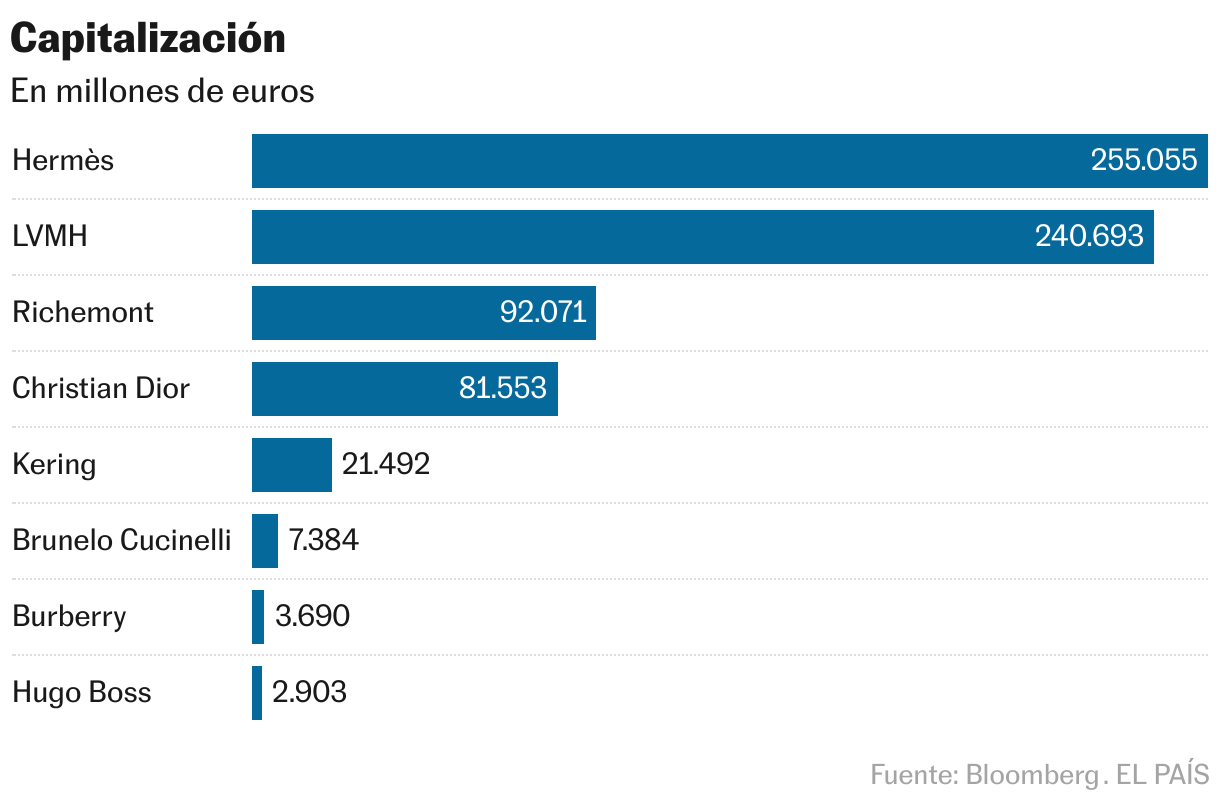 En un escenario de caídas bursátiles para la mayoría, Hermès marcó un hito hace unas semanas, cuando pasó al gigante LVMH en capitalización por primera vez en la historia y se convirtió en líder del CAC 40, el principal índice de la Bolsa parisiense, y el tercer título a nivel europeo por valor de mercado. Este es uno de los casos de estudio destacados por los expertos, porque “su estrategia ha sido siempre la misma, han respetado el valor del saber hacer”, apunta Venchiarutti.