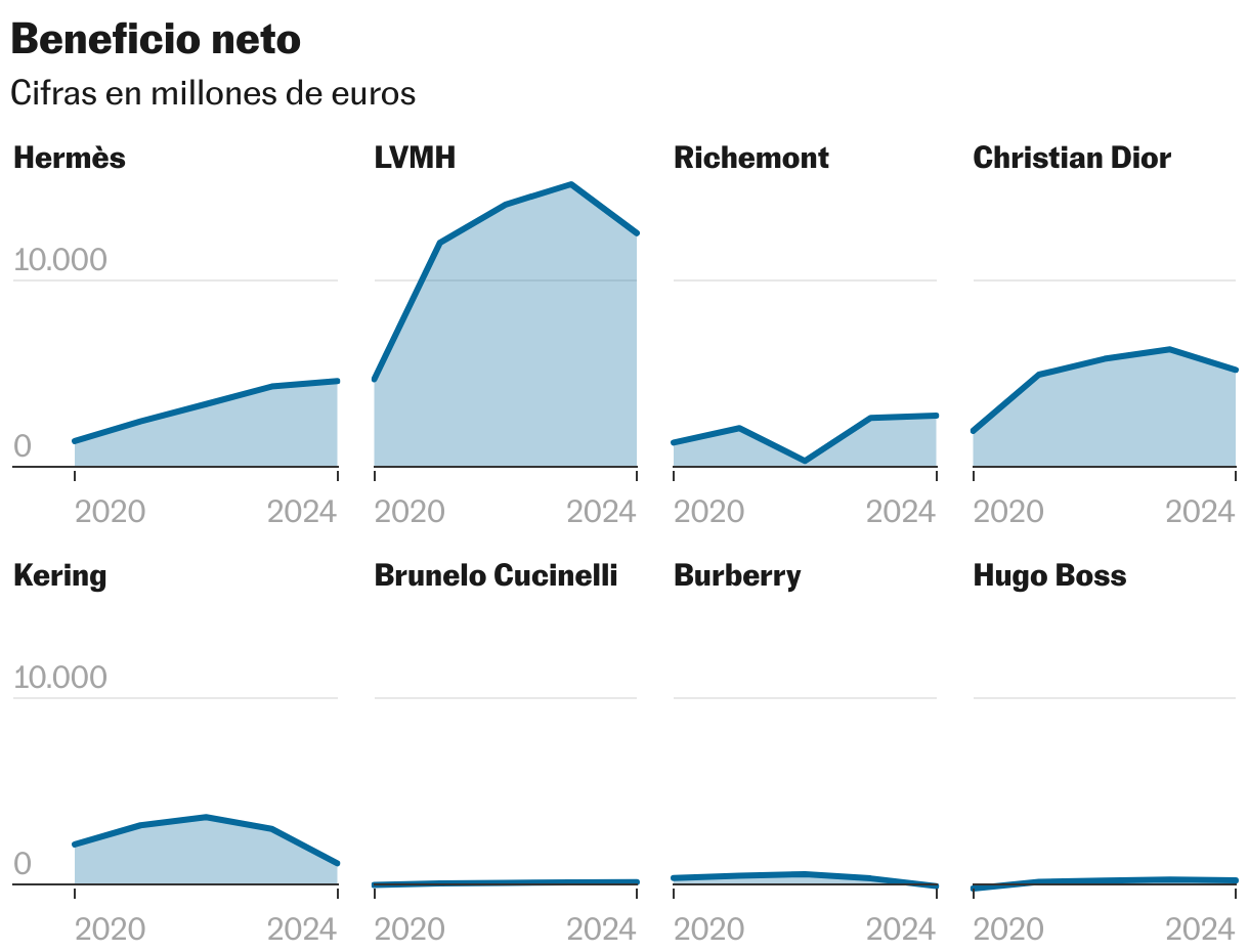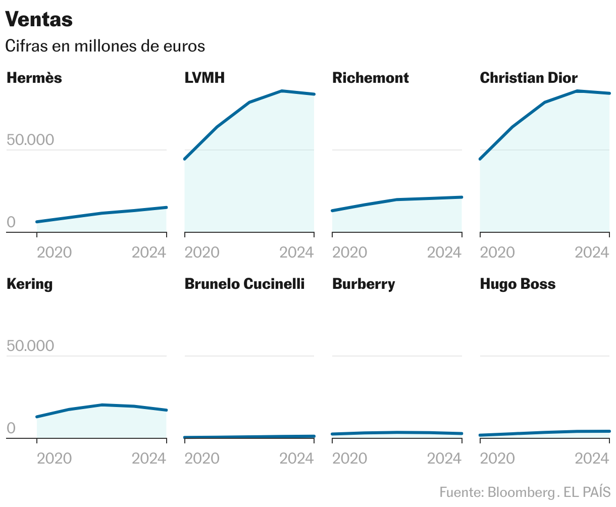 Los bienes de lujo personales (moda, marroquinería, joyería), que son el corazón del sector, sufrieron su primera contracción en 15 años, con un retroceso en 2024 del 2% en el gasto, hasta los 363.000 millones, sobre todo por la caída de la demanda de la generación Z (los nacidos a partir de 1997), más sensible al precio. Los clientes ultrarricos concentran el 40% de la cifra de negocio de las grandes marcas y refuerzan así la polarización del sector.