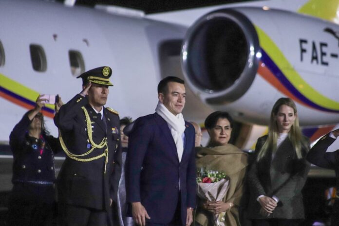 Noboa fue el tercer mandatario en arribar a La Paz este viernes, le antecedieron el presidente de Uruguay, Yamandú Orsi, y el de Chile, Gabriel Boric.