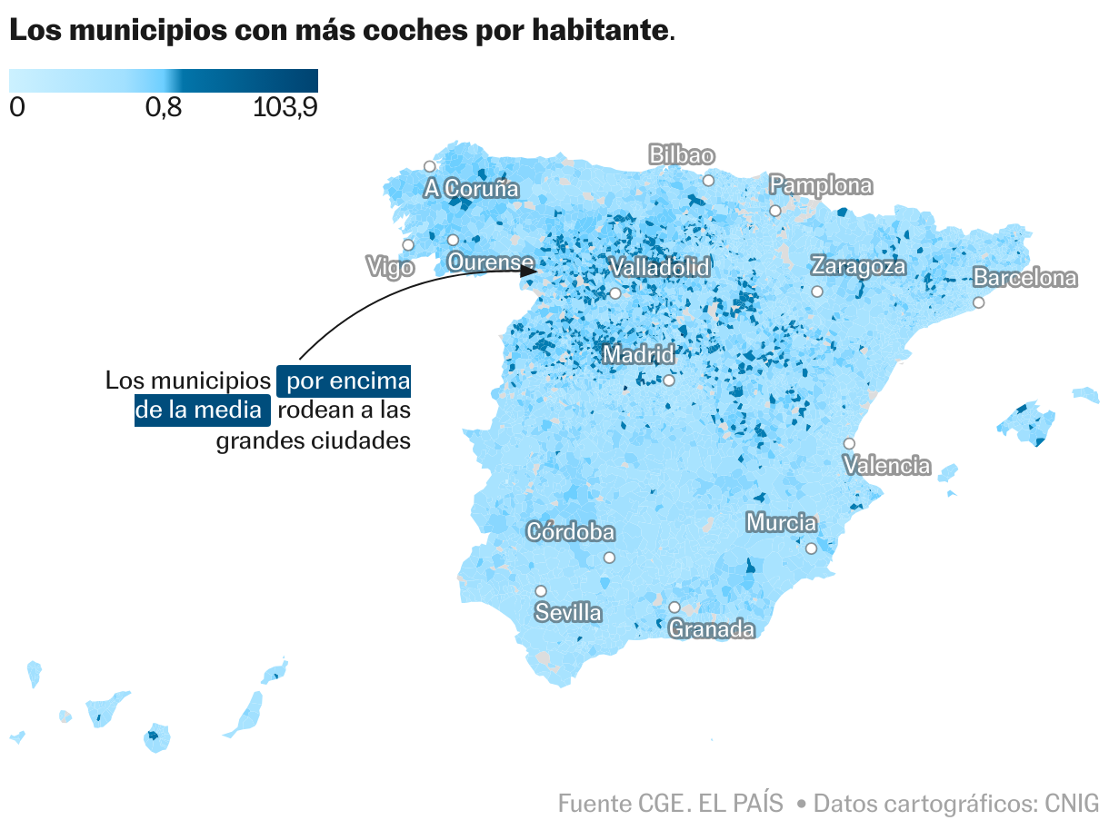 Los principales damnificados, claro está, son los grandes municipios. En ellos residen la mayor parte de los compradores y usuarios de vehículos de estas empresas y por sus calles circulan y hacen negocio las grandes flotas de renting y de transporte de usuarios. Sin embargo, los consistorios ven esfumarse millones de euros en ingresos que van a parar a los pueblos situados en sus órbitas. Además de todos los municipios madrileños (también entran en el grupo Venturada, Robledo de Chavela o Moralzarzal), en Barcelona hacen de las suyas Aguilar de Segarra o Rajadell, en Zaragoza está Retascón y en los archipiélagos cobran fuerza Tejeda (Canarias) y Escorca (Baleares).