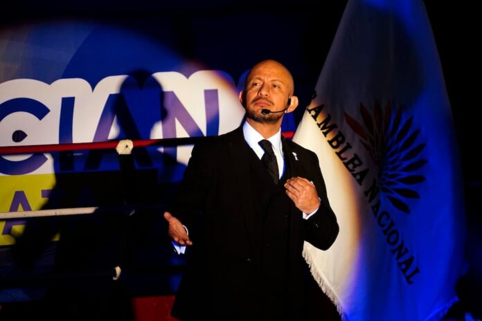 De terno negro y camisa blanca, a las 18:46 de este jueves, 23 de abril de 2026, el legislador por Pichincha ‘saltó’ a la lona para presentar, en doce rounds, los principales hitos de su gestión desde que asumió la curul 85 el pasado 14 de mayo de 2025.