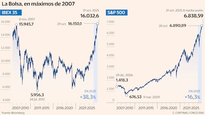 A comienzos de abril, cuando el presidente de EE UU anunció la mayor ofensiva arancelaria desde la Gran Depresión y los inversores huyeron de todo lo que oliera a riesgo, pocos imaginaban que los mercados regresarían tan rápido a marcar máximos históricos. A los habituales récords de Wall Street se han sumado en las últimas semanas los máximos de la Bolsa española, la japonesa, la británica, el índice de Corea del Sur e incluso el taiwanés.