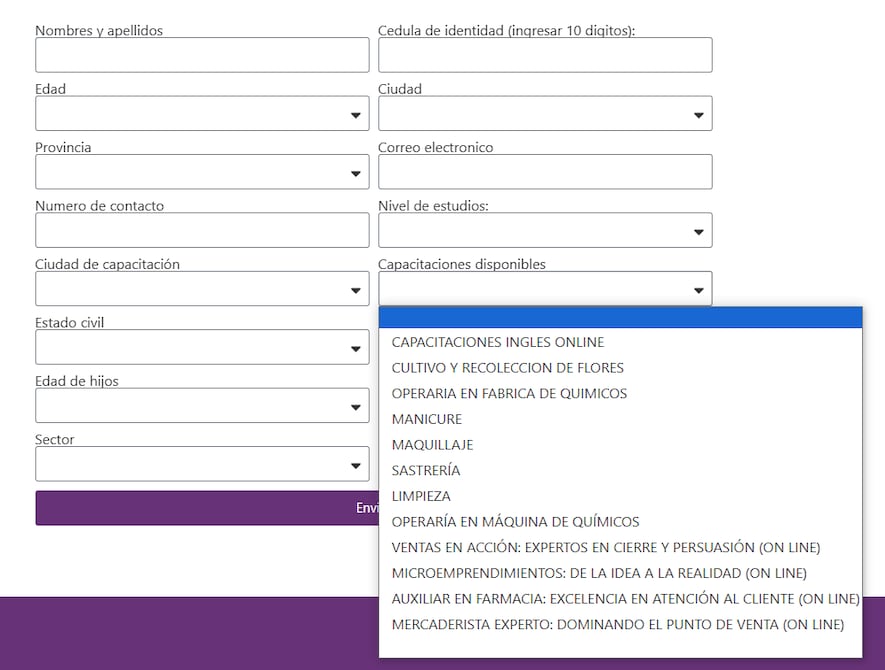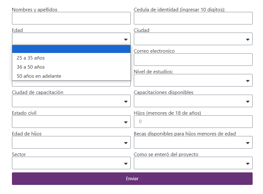 2.- Complete el formulario que contiene los datos personales de la mujer (nombre, tarjeta de identidad, correo electrónico, ciudad del lugar de residencia, número de contacto, número de niños si usted y su edad, estado civil).