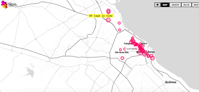 Tendrás que ir haciendo zoom en un mapa lo más detallado que quieras, puedes ver los hashtags utilizados por: