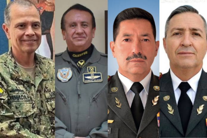 El mandatario designó a Henry Santiago Delgado Salvador como jefe del Comando Conjunto, a Ricardo Manuel Unda Serrano como comandante general de la Fuerza Naval, Iván Rodrigo Vásconez Hurtado como nuevo comandante general de la Fuerza Terrestre y a Mauricio Xavier Salazar Machuca como comandante general de la Fuerza Aérea.