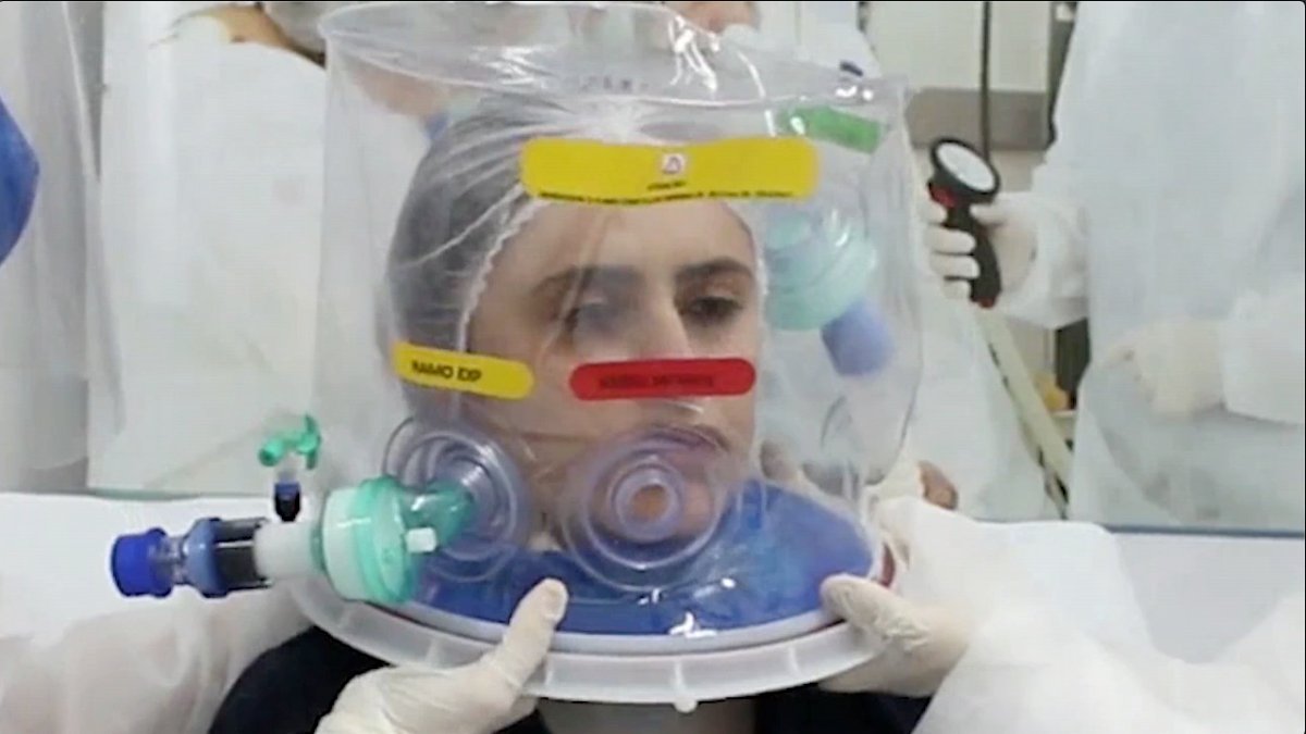 Este casco que recibió el nombre de «Elmo», permite que se reduzca la intubación en un 60-65% de pacientes en cuidados intensivos por covid-19. Se trata de un dispositivo creado con costes reducidos en Brasil. Antes de implementarse en unidades de cuidados intensivos, el casco llamado Elmo se sometió a numerosas pruebas clínicas y fisiológicas, pues deben estar seguros de que se trata de un dispositivo efectivo y que mejore la salud de los pacientes.