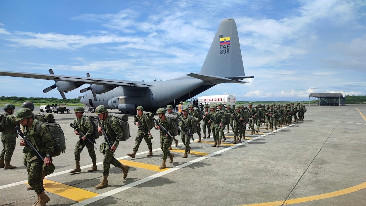 Efectivos del Ejército de Perú durante un recorrido en Manta.