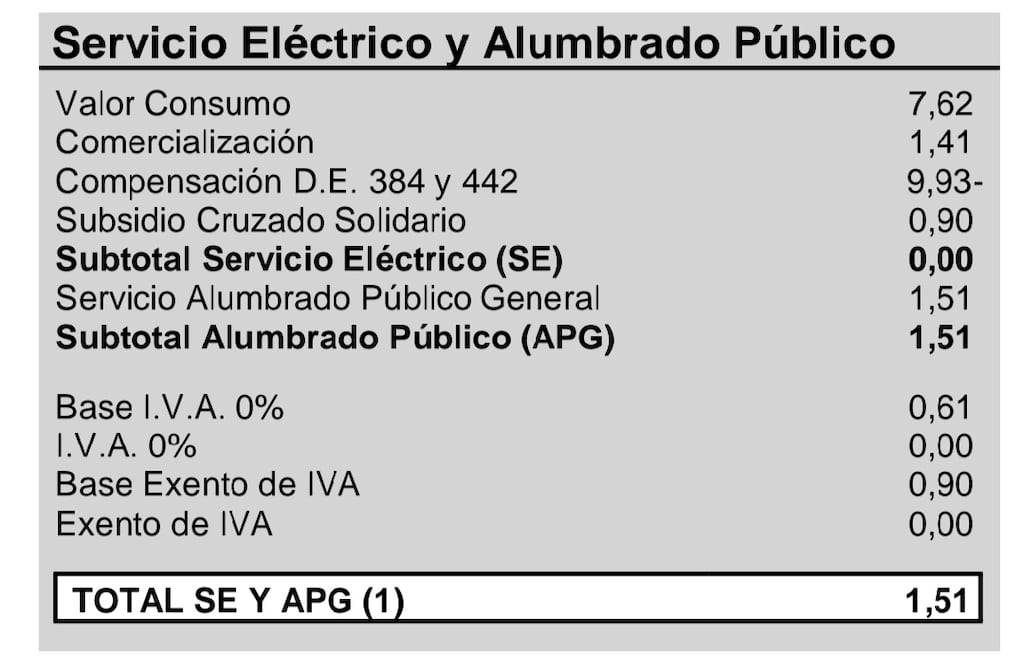 Por ejemplo, en los pueblos de la Sierra las facturas a pagar son de $1,50 y en algunos casos de $1,60. Un usuario de Latacunga que consumió 83 kWh tuvo que pagar $7.62 por consumo y con la compensación su monto queda en $1.51 por alumbrado público.