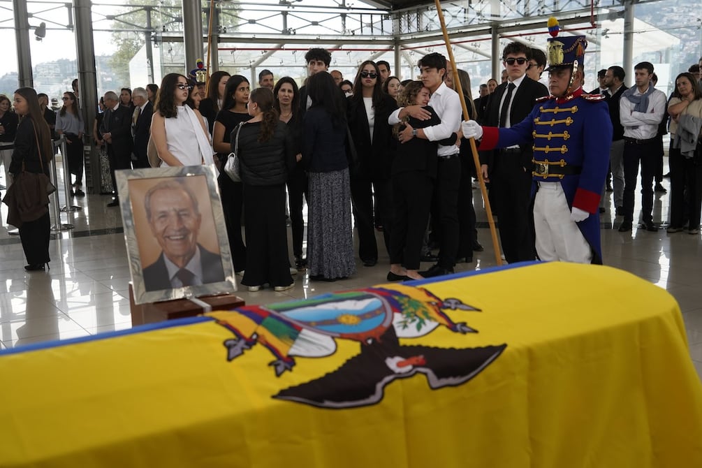 El ataúd, al que sus familiares le colocaron una bandera de Ecuador, permanece escoltado por seis granaderos de Tarqui y rodeado de arreglos florales que trajeron los asistentes.