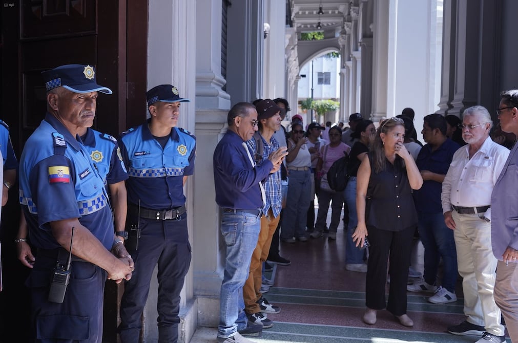 En los bajos se congregaron partidarios del alcalde de Guayaquil para protestar por este allanamiento.
