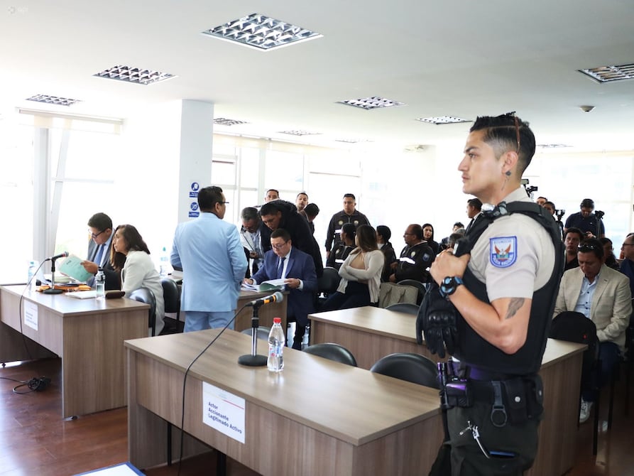La audiencia de calificación de detención y formulación de cargos contra los dos oficiales en servicio pasivo y el oficial en funciones arrancó cerca de las 10:30 en la Corte Provincial de Justicia de Pichincha y ante la presidenta subrogante de la Corte, María de los Ángeles Montalvo.