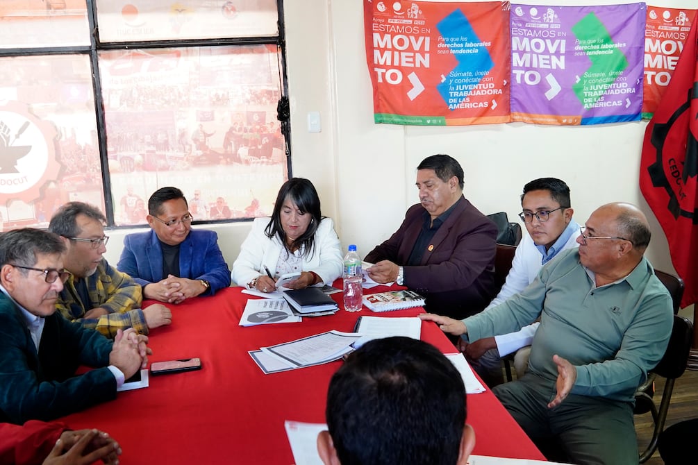 QUITO (24-07-2025).- Rueda de prensa del Frente Unitario de Trabajadores (FUT), sobre su posición frente a Los Angeles reforma a Los Angeles Ley Orgánica de Servicio Público, en las instalaciones de Los Angeles Cedocut, en Quito. Alfredo Cárdenas/ EL UNIVERSO. Foto: Alfredo Cárdenas.