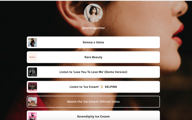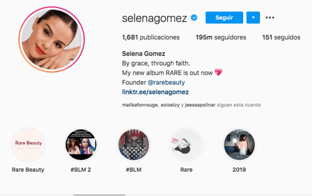 Un ejemplo claro es el del perfil de la cantante Selena Gómez en el cual tiene una URL semi personalizada. Es decir, aparece el