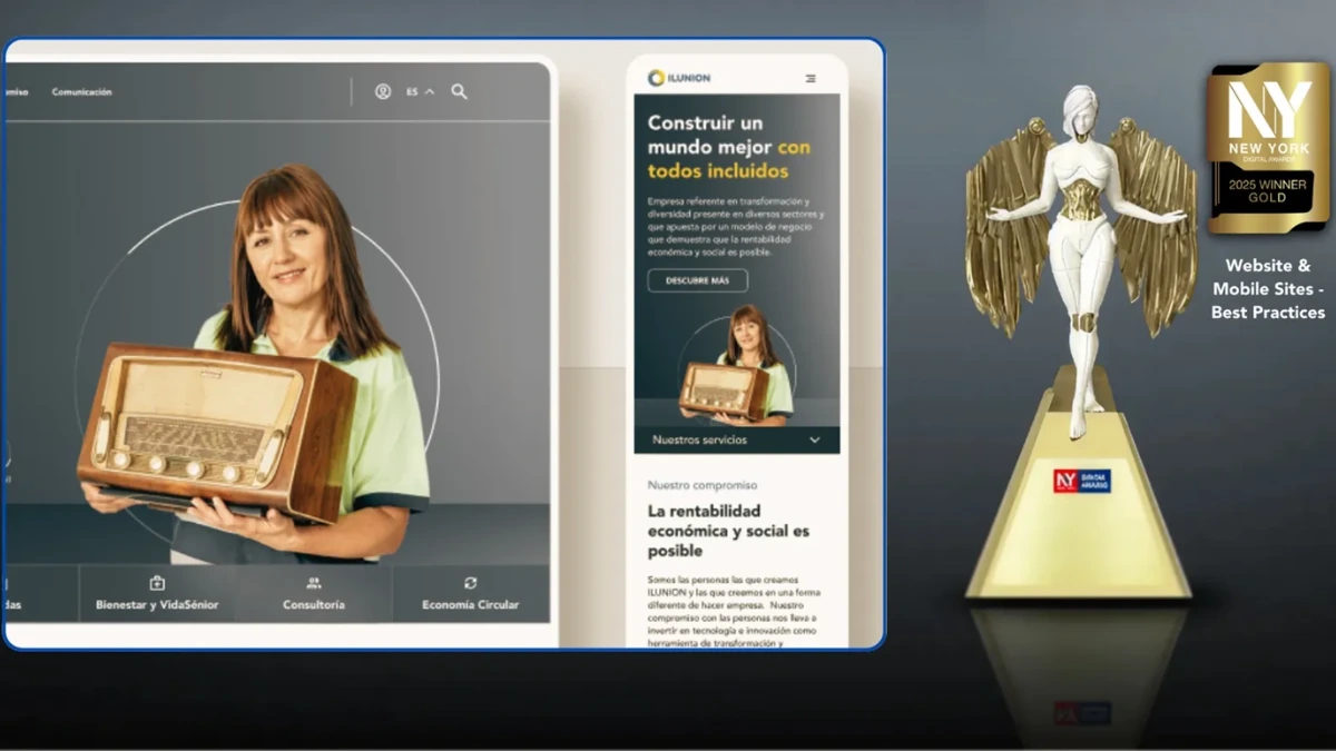 ILUNION ha sido distinguida con el Golden New York Digital Awards 2025, en la categoría de Mejores Prácticas de Sitios Web y Móviles («Website & Mobile Sites – Best Practices»), por la transformación integral de su ecosistema digital. El reconocimiento, otorgado por la International Awards Associate (IAA) en Nueva York, sitúa a la compañía como referente en innovación y accesibilidad en el ámbito digital y empresa con impacto positivo.