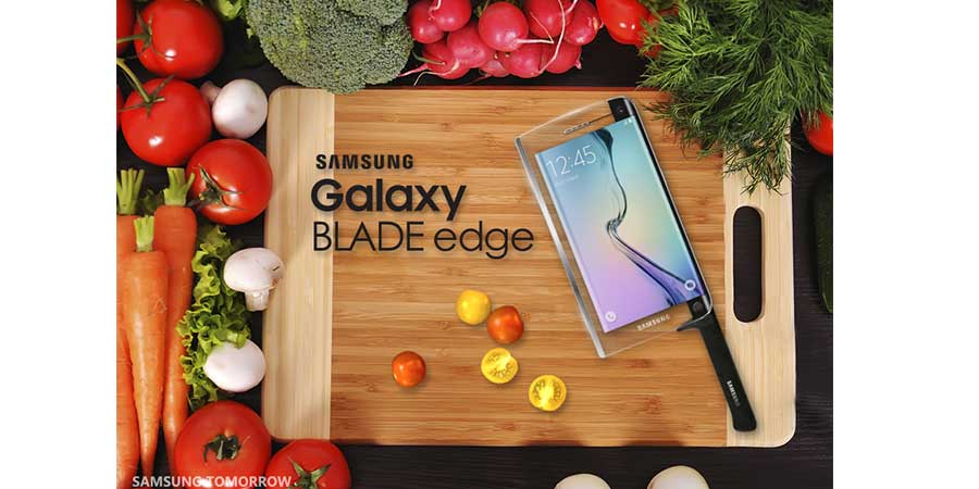 Samsung Blade Edge. La firma surcoreana lanzó este cuchillo de cerámica que puede tomar fotos mientras se cocina. Con una forma semejante a un teléfono celular, el dispositivo es resistente al agua y al fuego, contiene un termómetro y sensores para realizar un corte perfecto, y contará con KNOX, la seguridad de Samsung que tendrá estas funciones: Detector de dedos (impedirá que nos cortemos), detector de sangre (en casos extremos llamará a emergencias) y detector de gérmenes.